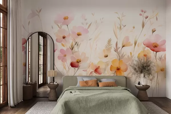 Valokuvatapetti Pastellisävyinen abstrakti villikukkakenttä, akvarellimaalaus Nr w09757