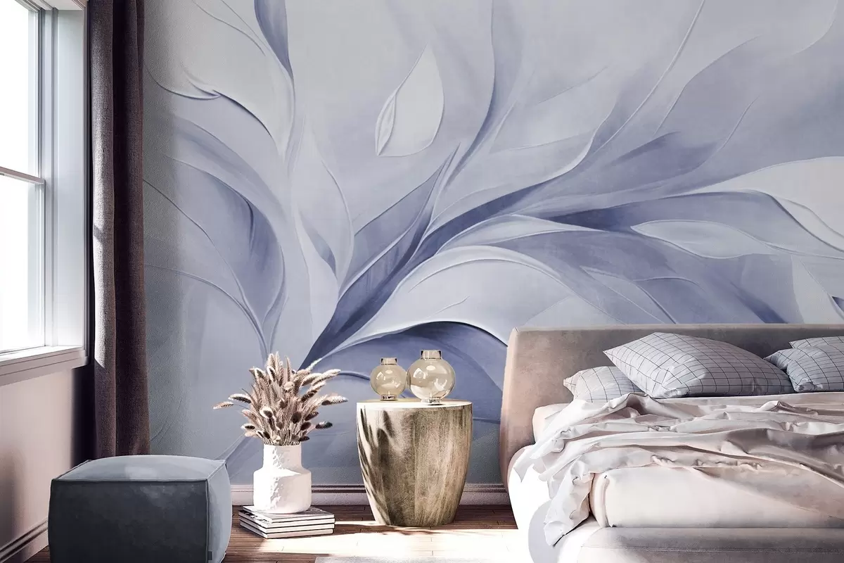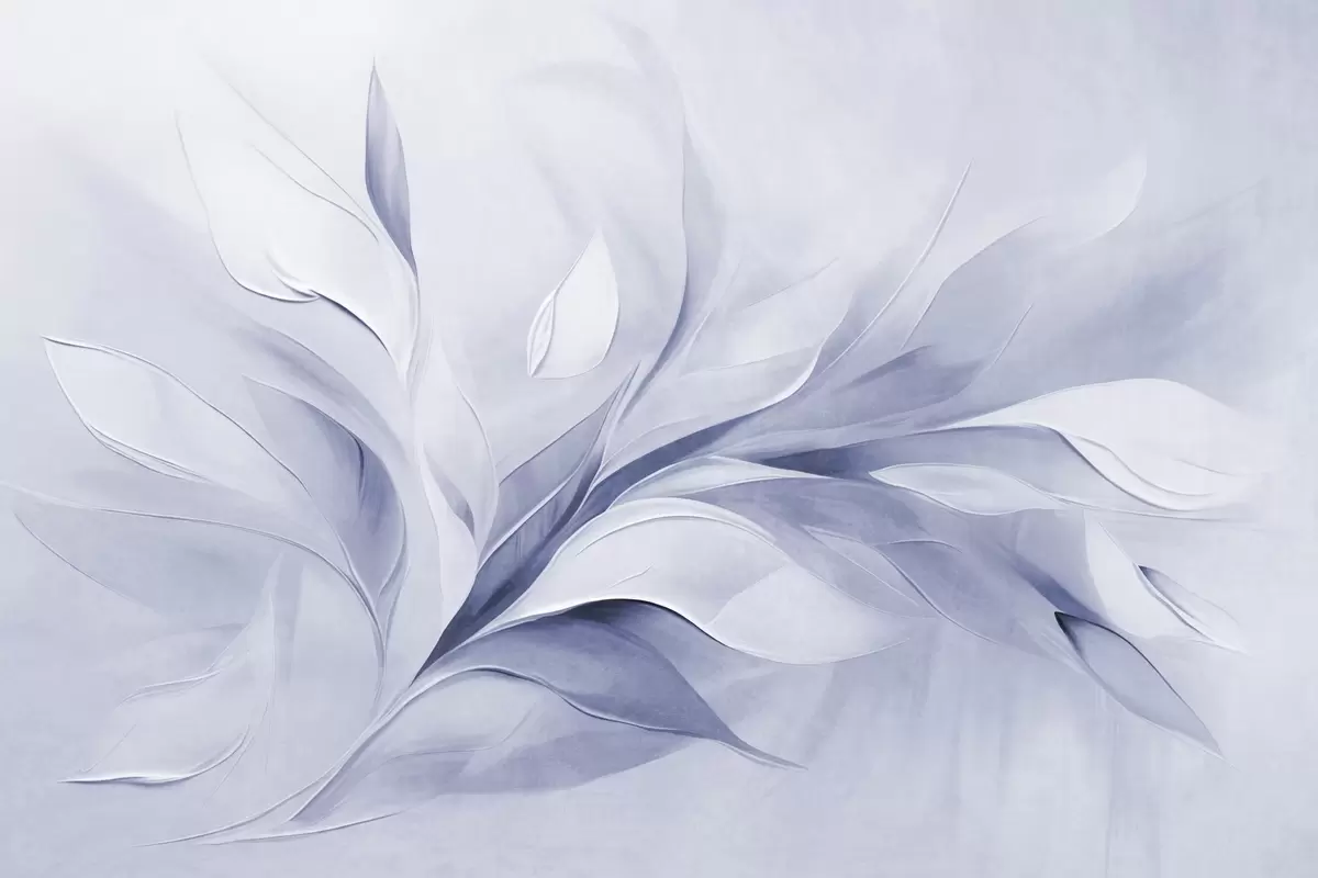 Valokuvatapetti Abstrakti teksturoitu maalaus, jossa vaaleansiniset ja valkoiset lehdet virtaavat Nr w09765
