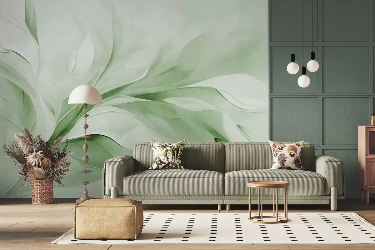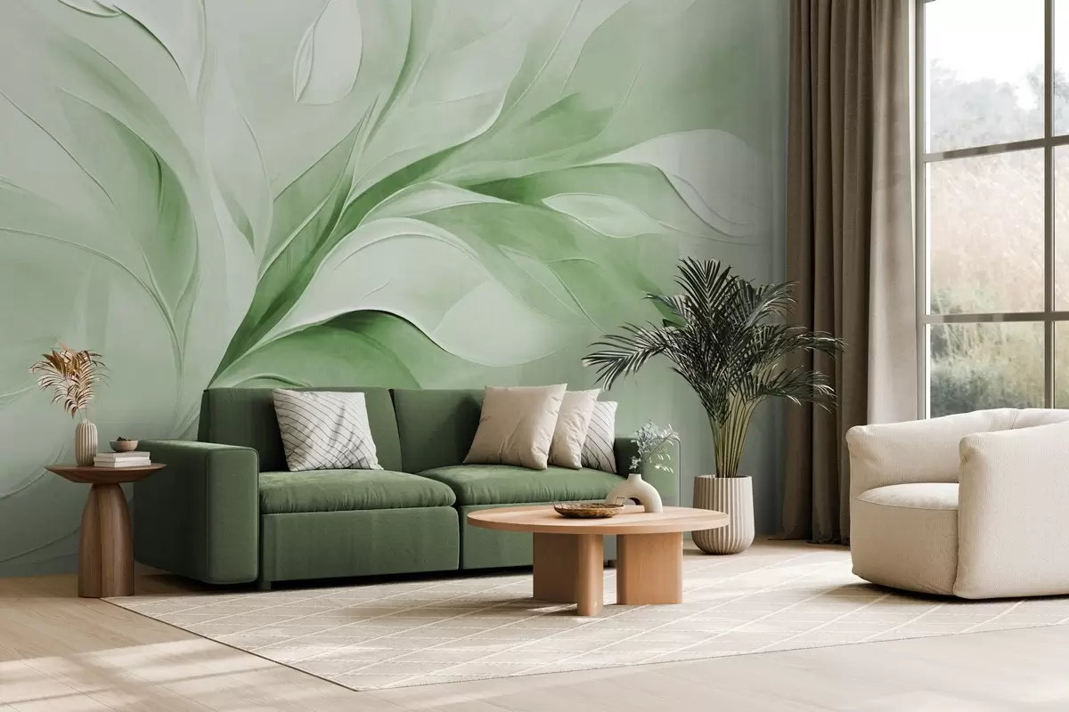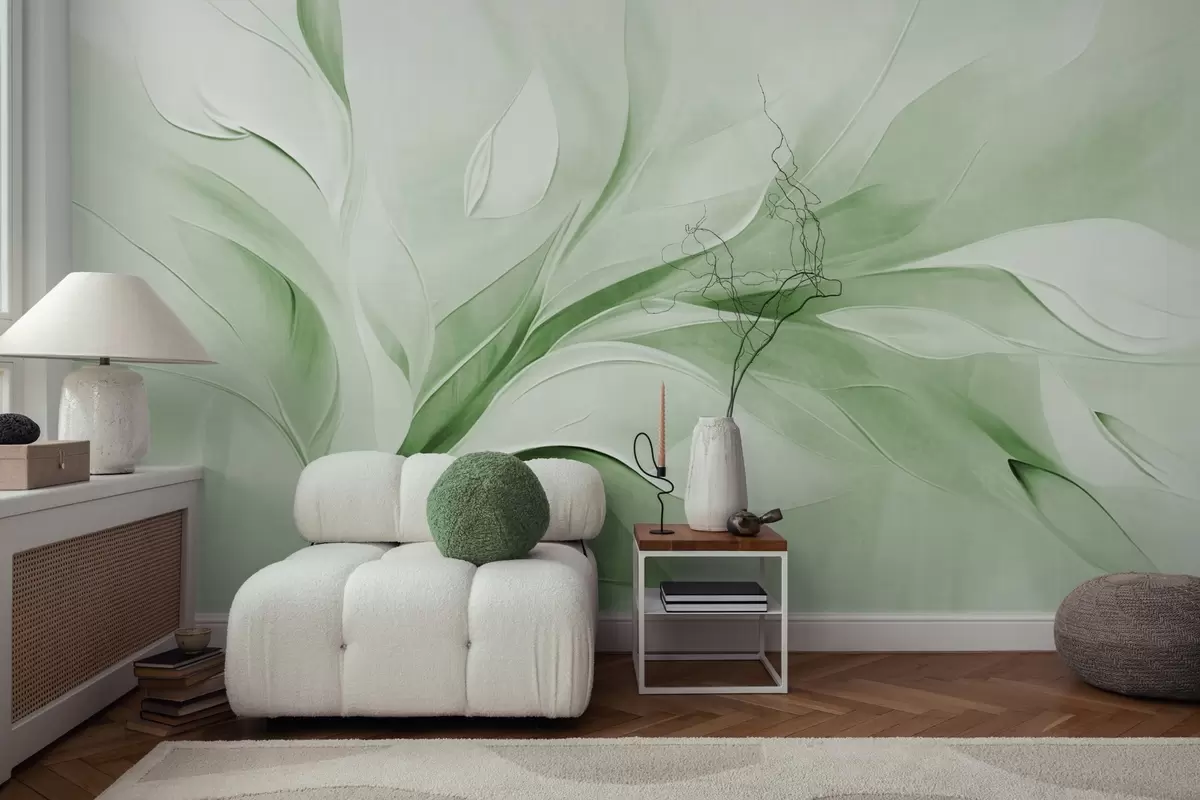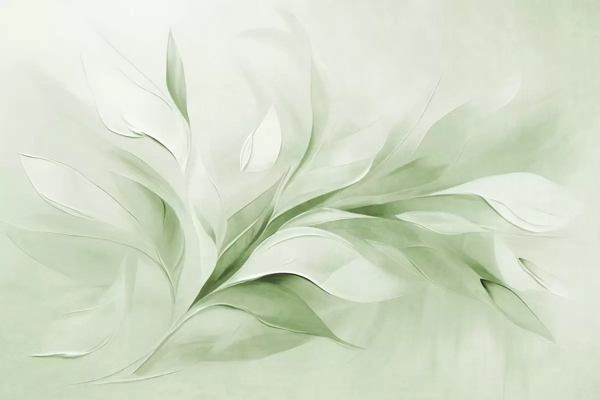 Valokuvatapetti Abstrakti teksturoitu maalaustekniikka, jossa vihreät ja valkoiset lehdet virtaavat Nr w09765v2