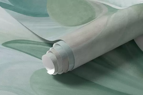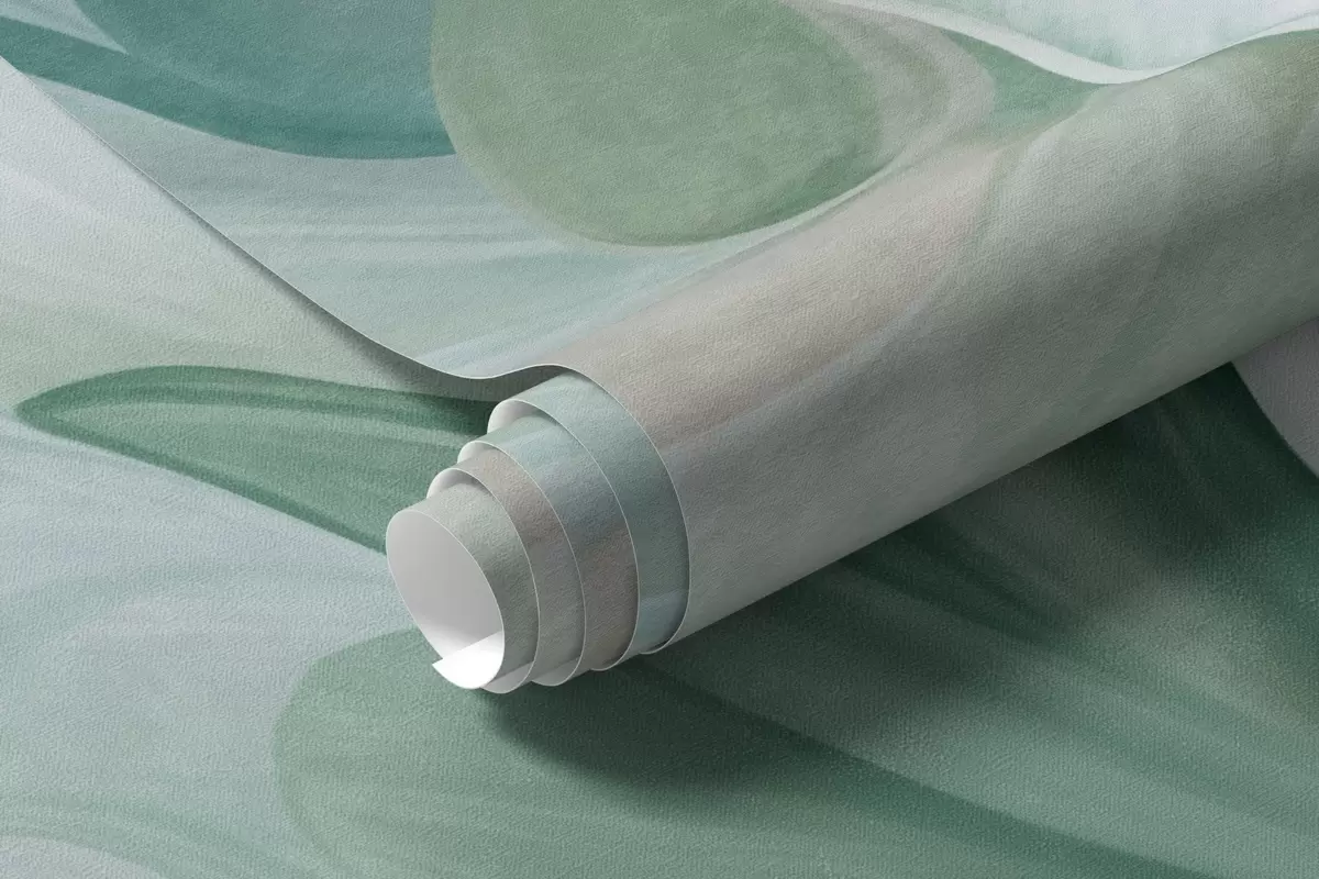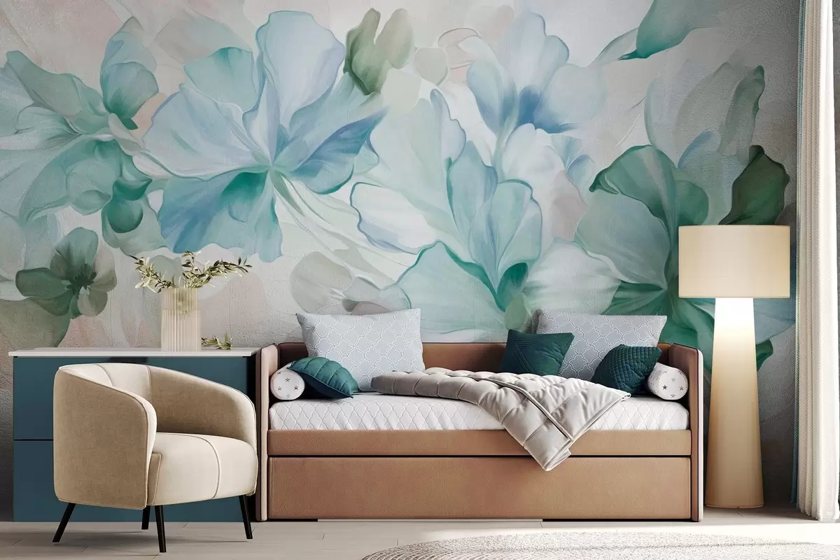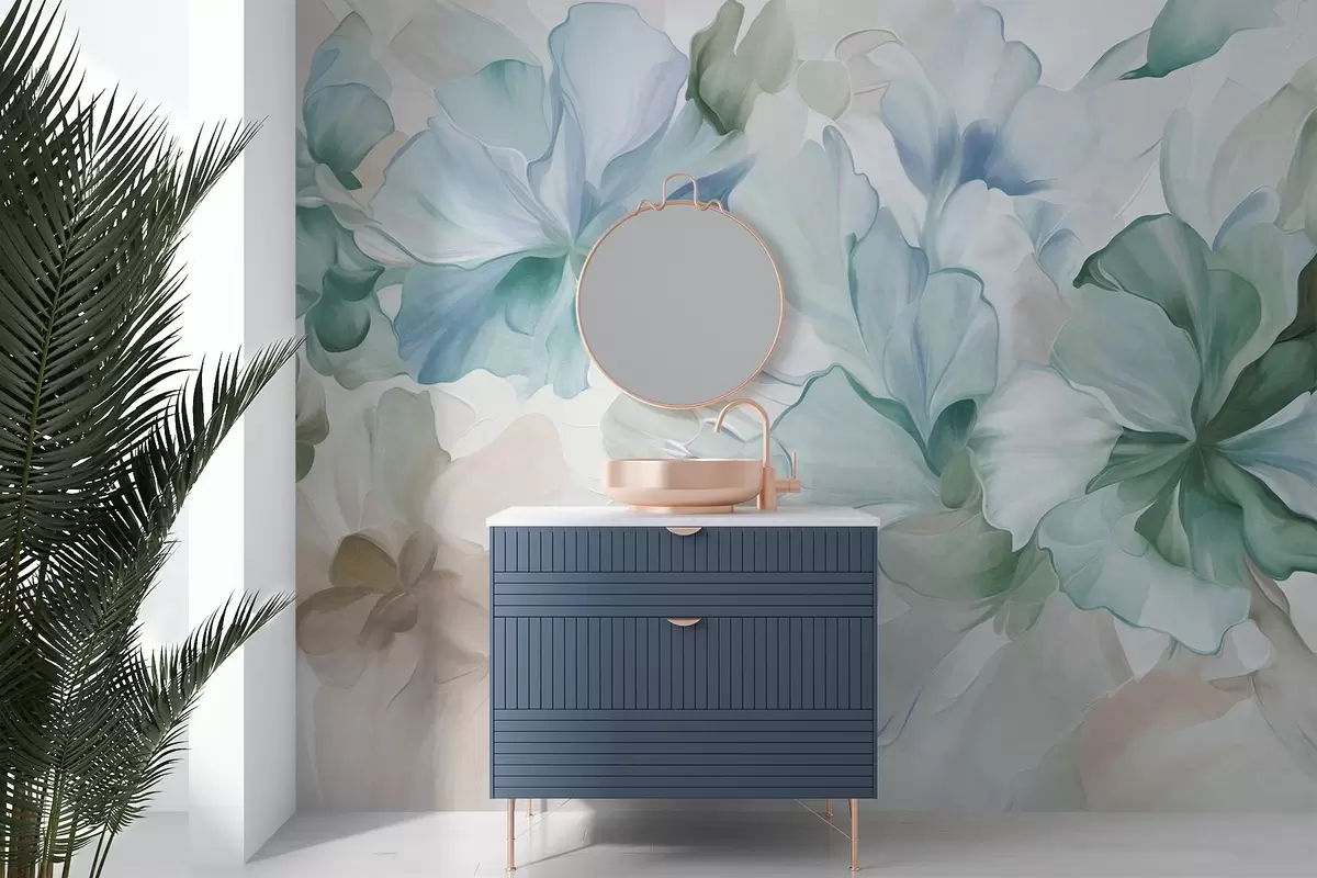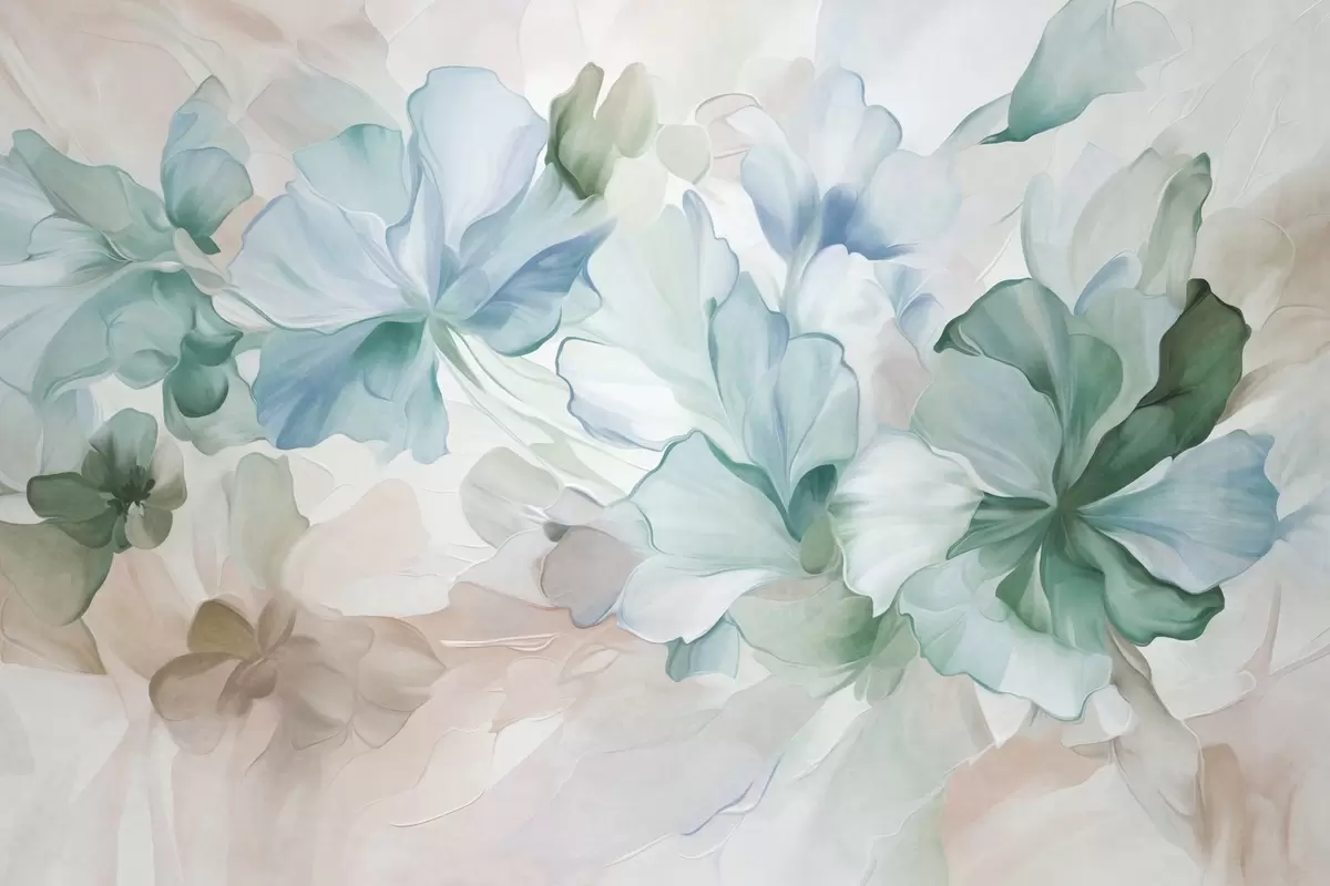 Valokuvatapetti Abstraktit fantasiakukat vihreän, sinisen ja beigen sävyissä maalauksellisessa tyylissä, teksturoitu taide Nr w09767v1