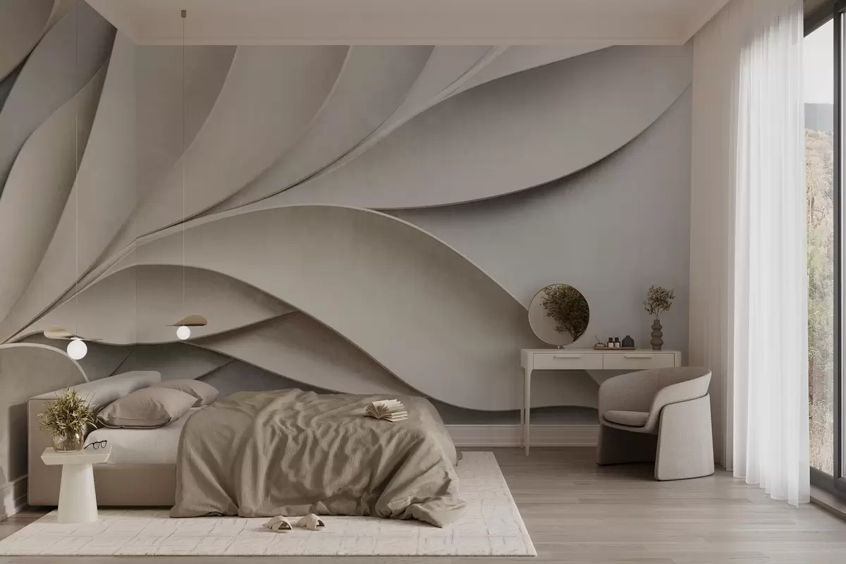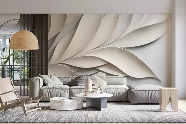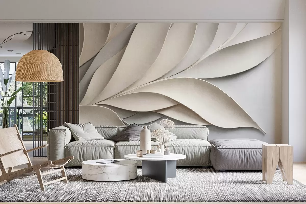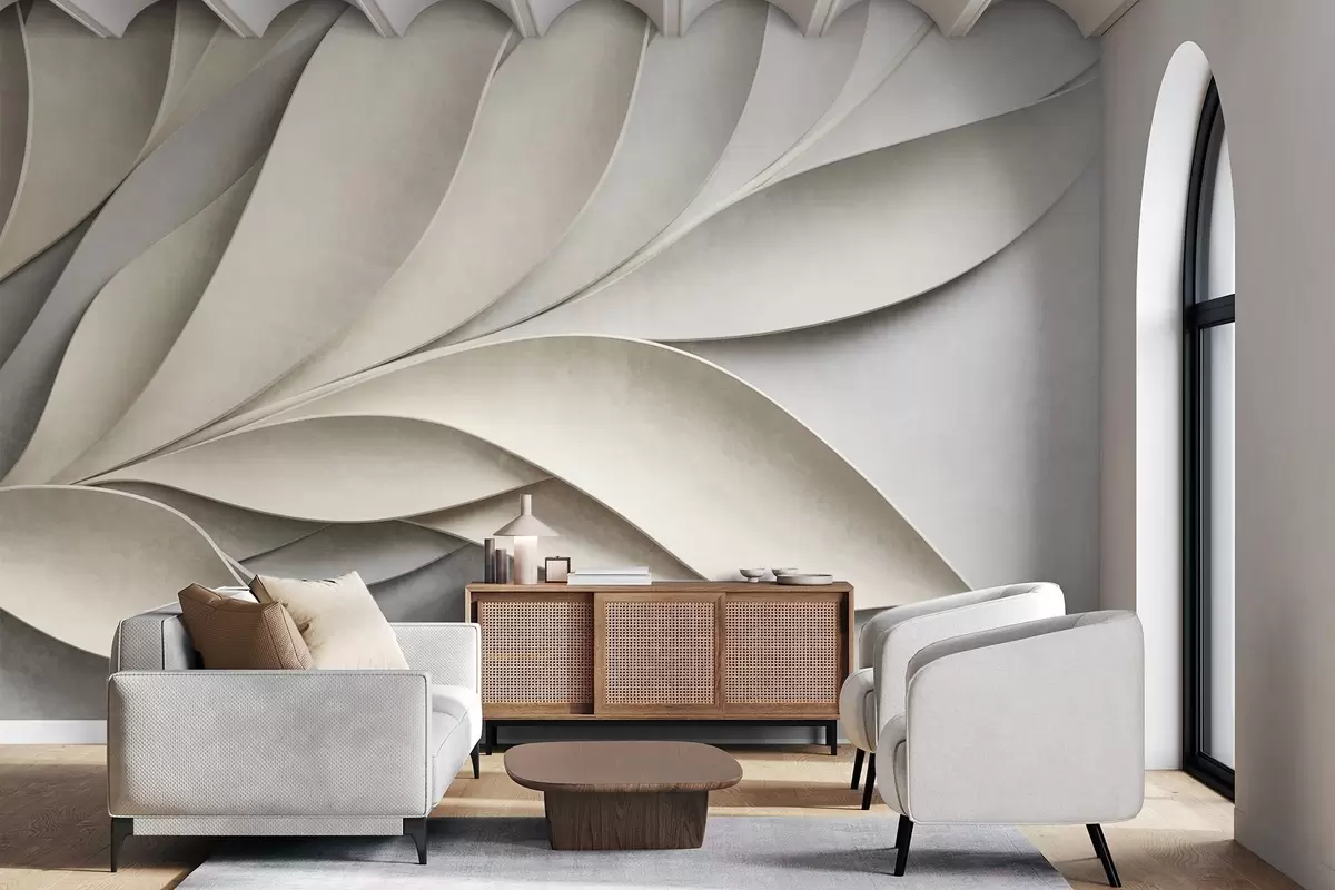 Valokuvatapetti Abstraktit lehdet beigeä ja harmaata, teksturoitu moderni taide Nr w09769