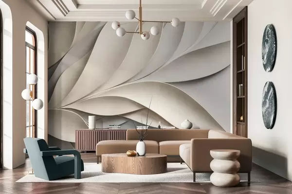 Valokuvatapetti Abstraktit lehdet beigeä ja harmaata, teksturoitu moderni taide Nr w09769