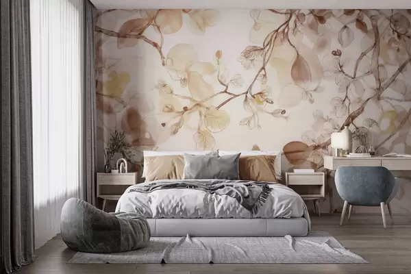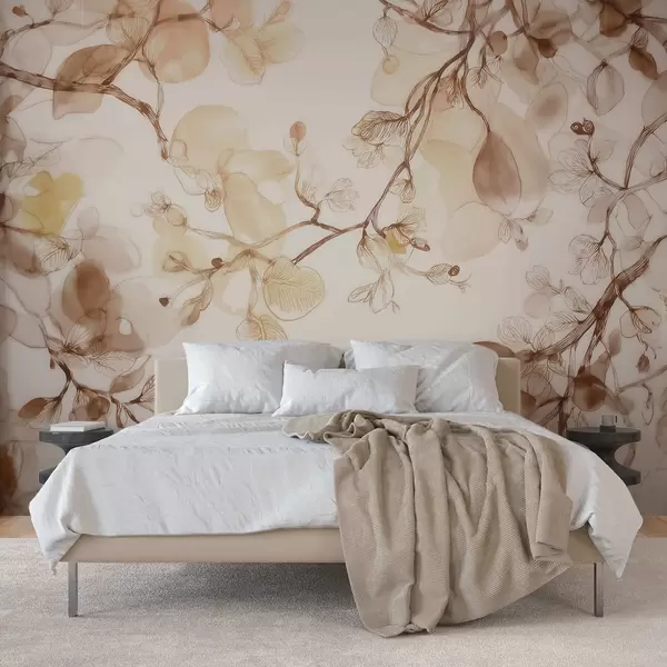 Valokuvatapetti Ilmavat, riippuvat oksat beigeissä sävyissä vesivärityyliin Nr w09795