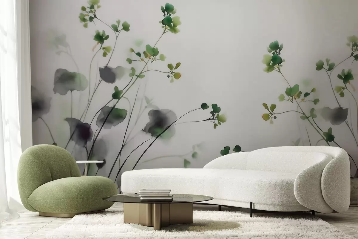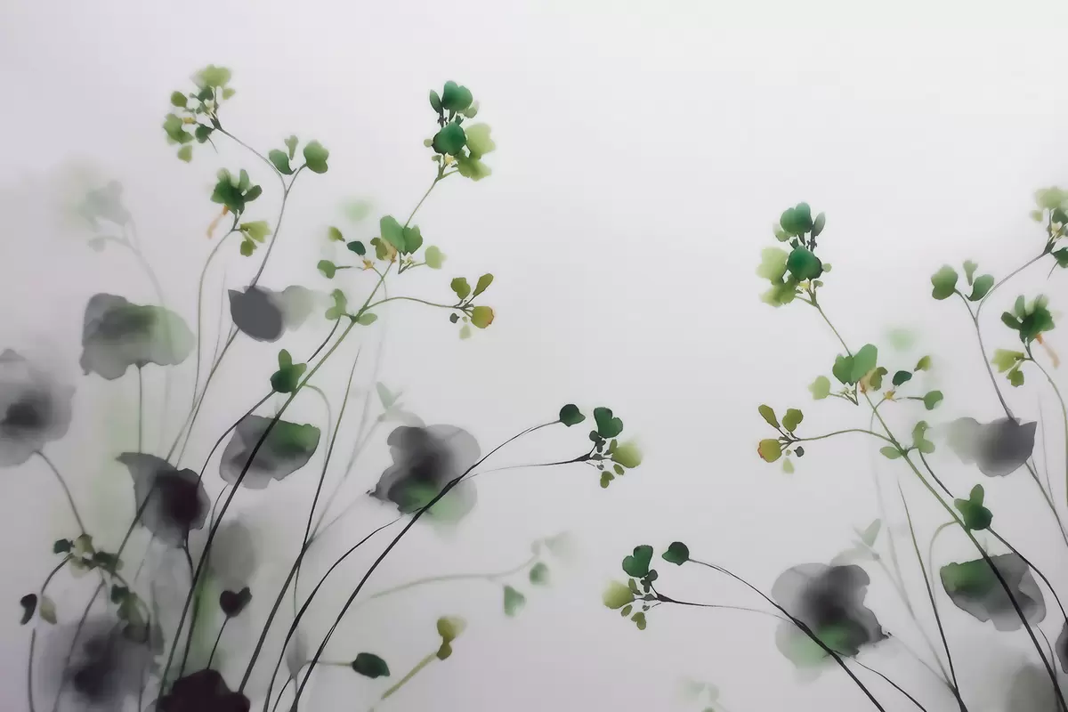 Valokuvatapetti Hienostuneet luonnonkukat ja ruoho vesivärityyliin Nr w09796