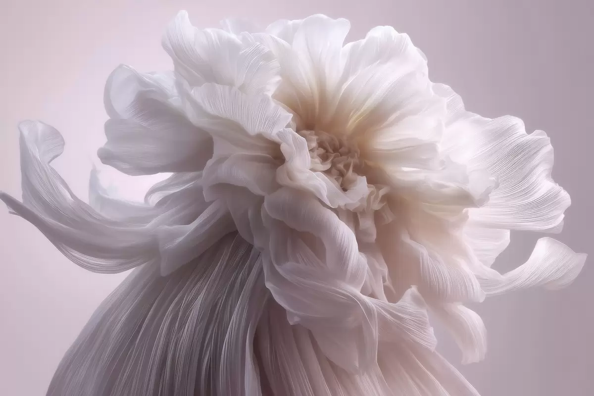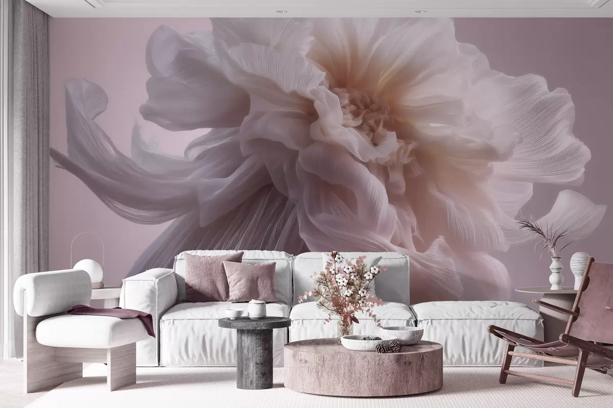 Valokuvatapetti Täyteläinen silkkikukka pehmeissä vaaleanpunaisissa ja beigeissä sävyissä Nr w09809
