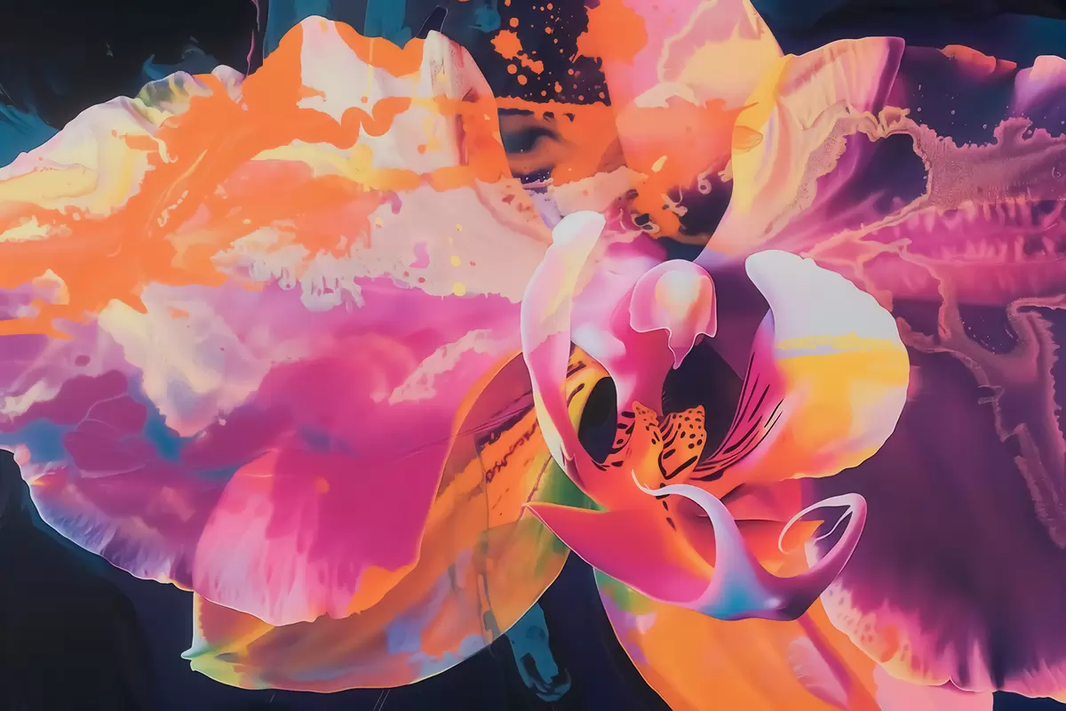 Valokuvatapetti Eläväinen abstrakti orkideakukka, jossa on rikkaat värit ja dynaamiset muodot vesivärityyliin Nr w09855