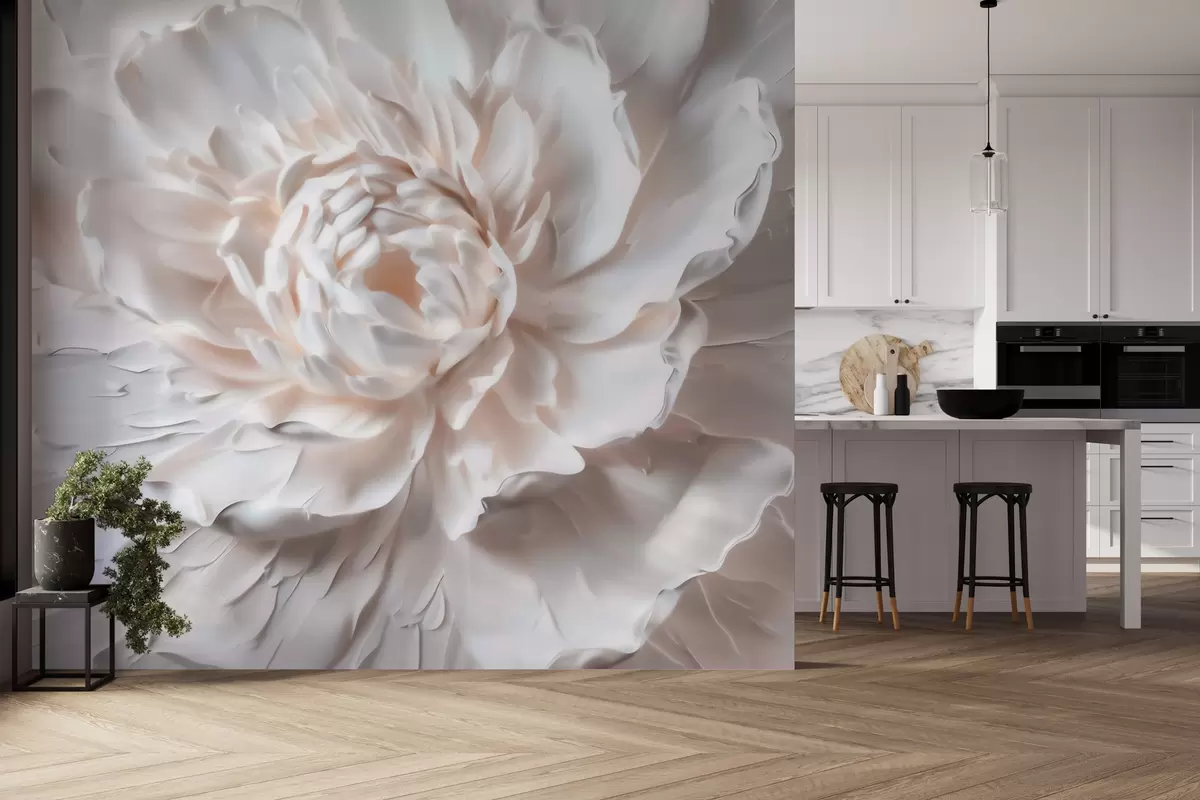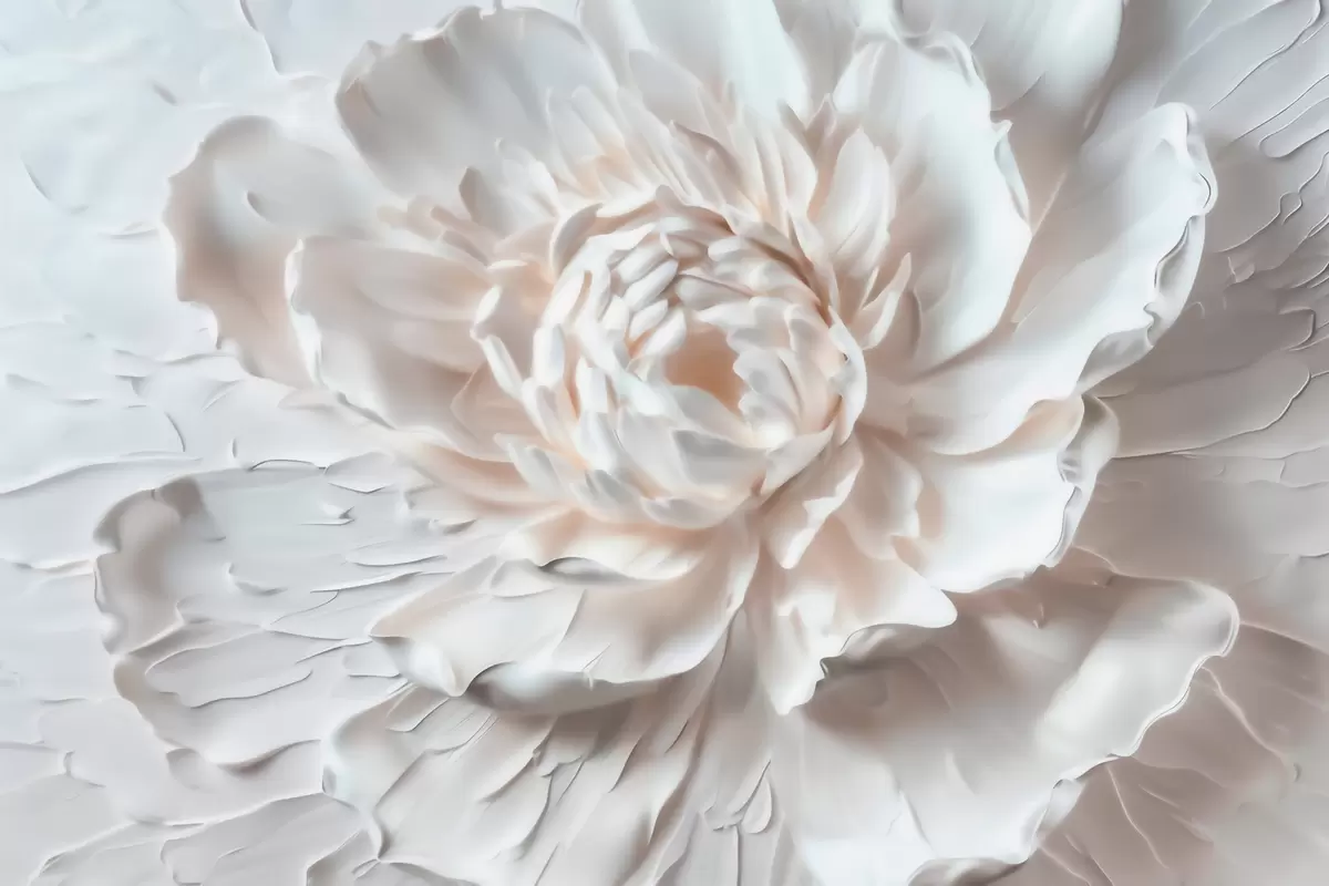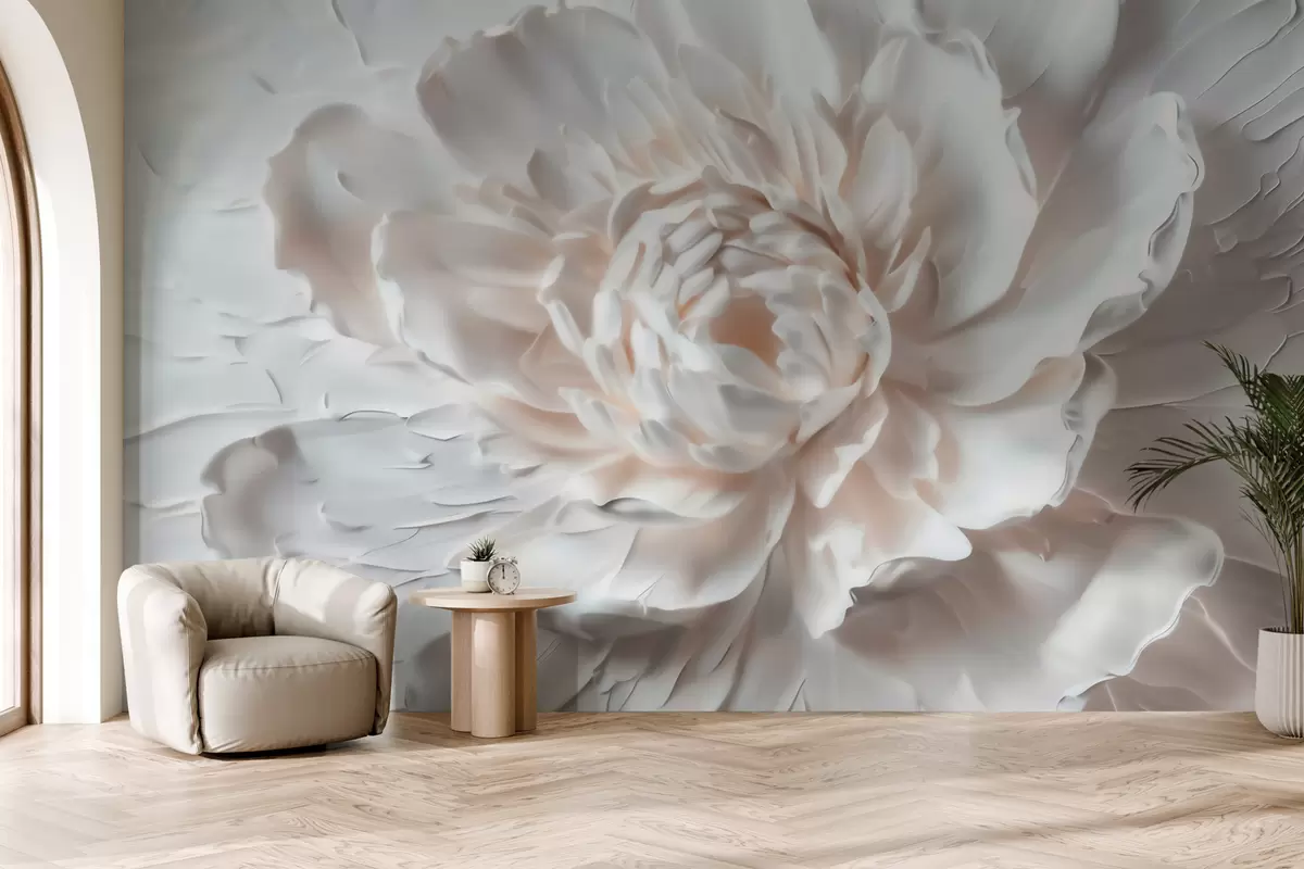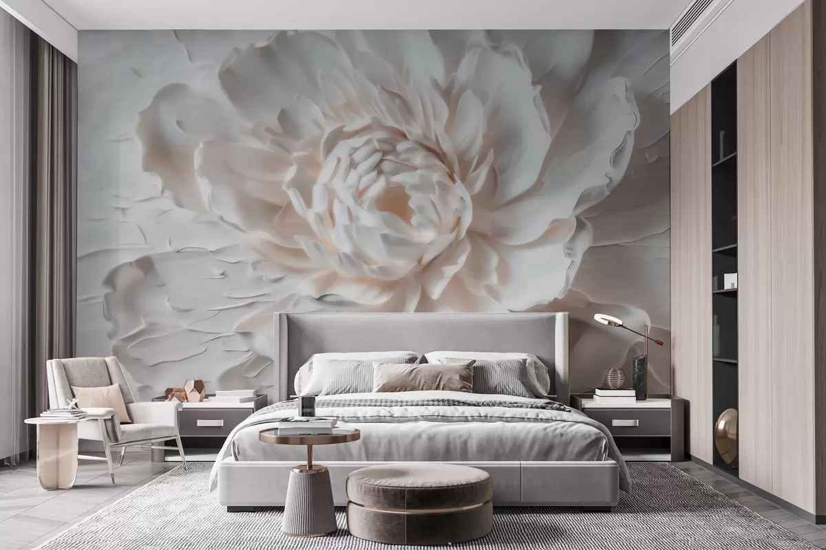 Valokuvatapetti Hienostunut kukka-reliefi, jossa on sileät terälehdet vaaleissa sävyissä Nr w09861
